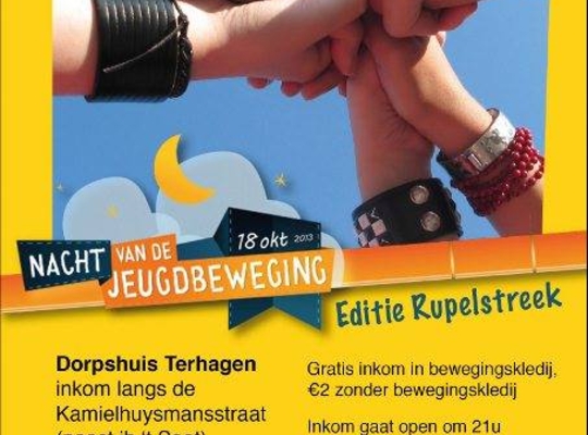 Op vrijdag 18/10 organiseerde de Rumstse Jeugdraad - in samenwerking met alle Rumstse jeugdverenigingen en Jeugdhuis 't Soot - de eerste Nacht van de Jeugdbeweging. Dit evenement, dat in de loop der jaren een welgeziene uitloper werd van de Dag van de Jeugdbeweging - wordt traditioneel vooral in grote steden zoals Turnhout, Mechelen en Antwerpen georganiseerd. Onder impuls van onze mandatarissen sloegen de Rumstse jongeren echter de handen in elkaar om de hoogdag van de jeugd naar de Rupelstreek te halen.