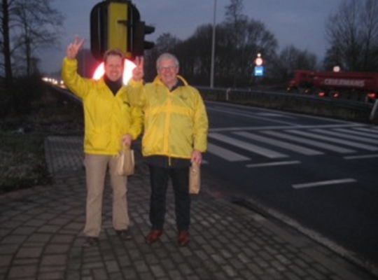 Ook wij deelde in onze gemeente een kleine attentie uit aan de pendelende medemens. Dit werd letterlijk en figuurlijk gesmaakt door de verrasste bestuurders.